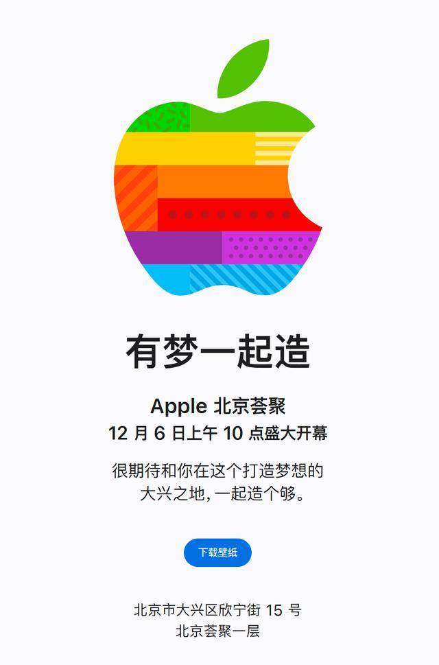 11月17日消息,蘋果公司通過官網宣布:“Apple 北京薈聚”零售店將于 12 月 6 日上午 10 點開幕。